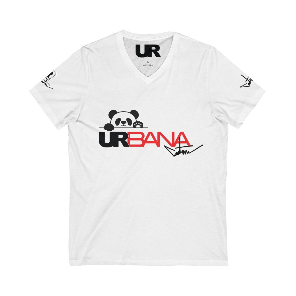 Urbana Couture Unisex Panda Short Sleeve V-Neck Tee BLK/RED